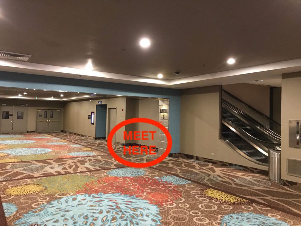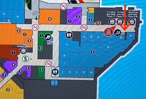 Meet on the Spa level near the escalators. Take the elevators down to level S and walk to the other side of the hallway. Make sure not to stand around near the elevators.
